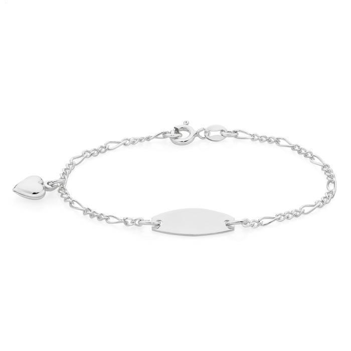 Sterling Silver 16cm Solid Figaro 3+1 Heart Charm Identity Bracelet