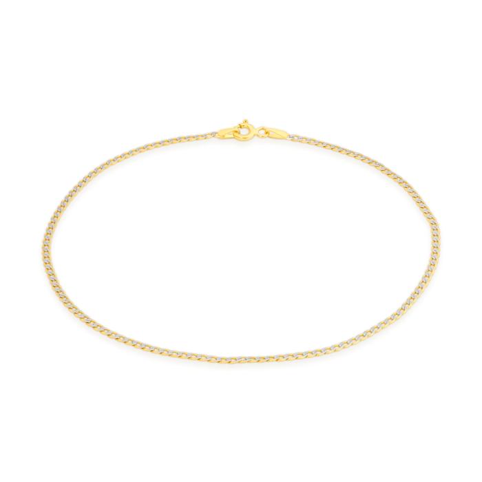 9ct Gold Two Tone Gold Solid 25cm Diamond-Cut Curb Anklet