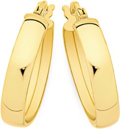 Italian Made 9ct Gold 4x15mm Polished Half Round Hoop Earrings Approximate Dimensions - 4mm Width x 15mm Inner Diameter.