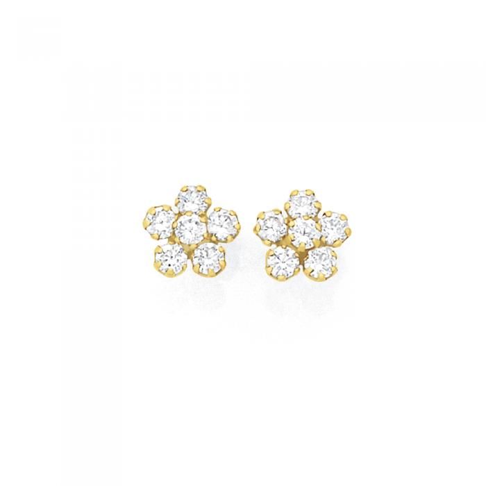 9ct Gold Cubic Zirconia Flower Stud Earrings