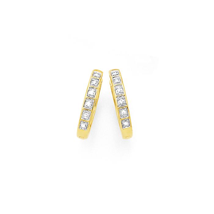 9ct Gold Diamond Pave Set Bar Huggie Earrings. External Size = Approximately 12mm x 3mm.