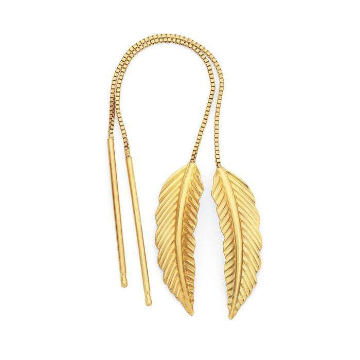 9ct Gold Leaf Thread Through Earrings
