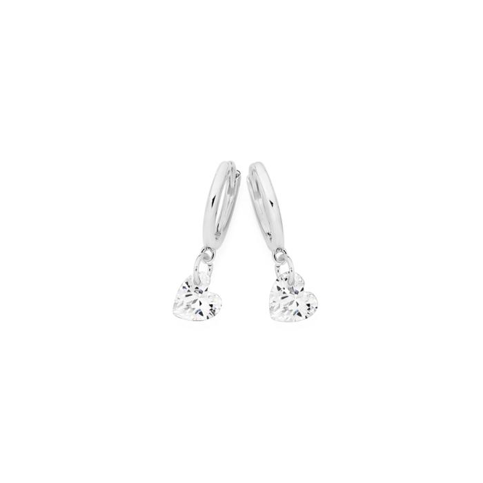 Sterling Silver Cubic Zirconia Heart Drop 6mm Huggie Earrings