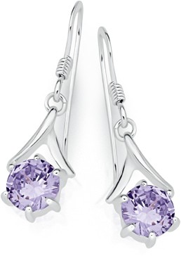 Sterling Silver Lavender CZ Wishbone Drop Hook Earrings 1627014
