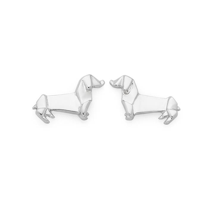 Sterling Silver Origami Dachshund Stud Earrings 1539026