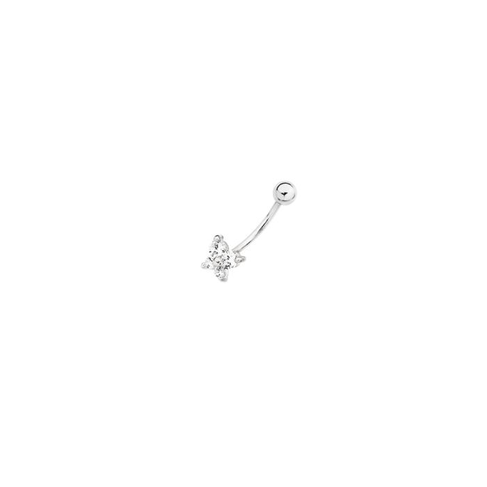 Sterling Silver & Stainless Steel Tiny Cubic Zirconia Butterfly Belly Bar