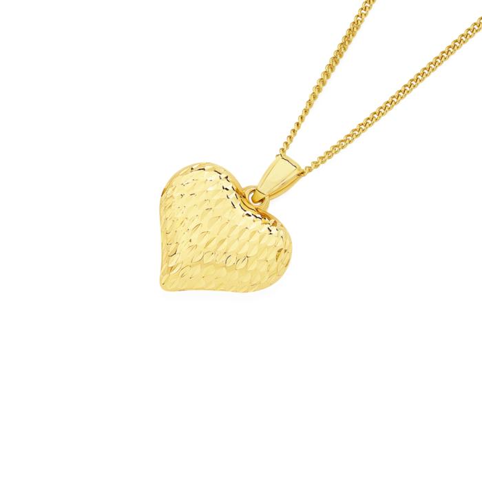 9ct Gold 16mm Diamond-Cut Puff Heart Pendant. Approximate Dimensions - 16mm Width x 20mm Height including bail.
