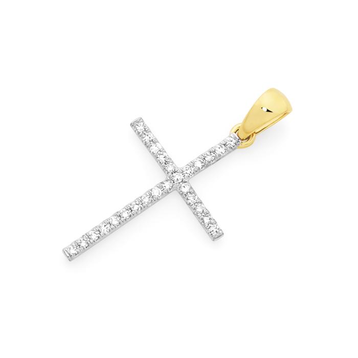 9ct Gold Diamond Pave Set Cross Pendant Total Diamond Weight = .10ct. Size = Approx. 24mm x 12mm Including Bale.