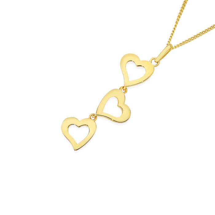 9ct Gold Triple Open Hearts Pendant