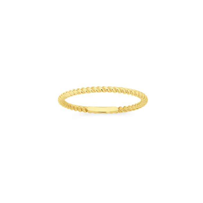 European Made 9ct Gold Polished Fine Twist Stacker Ring. Available in Sizes O & Q. Approximate Dimensions - 1.5mm Width.