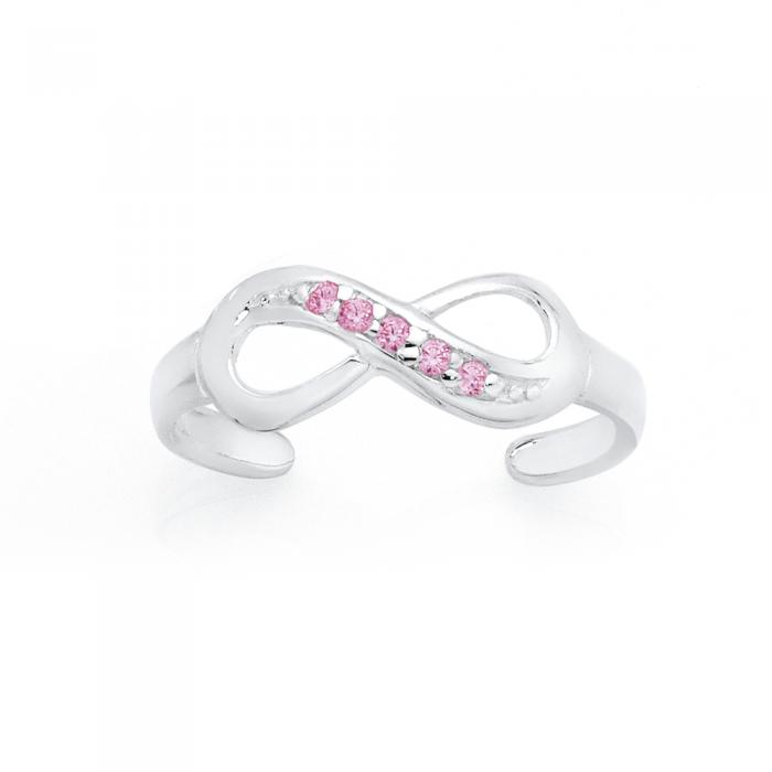 Sterling Silver Pink Cubic Zirconia Infinity Toe Ring