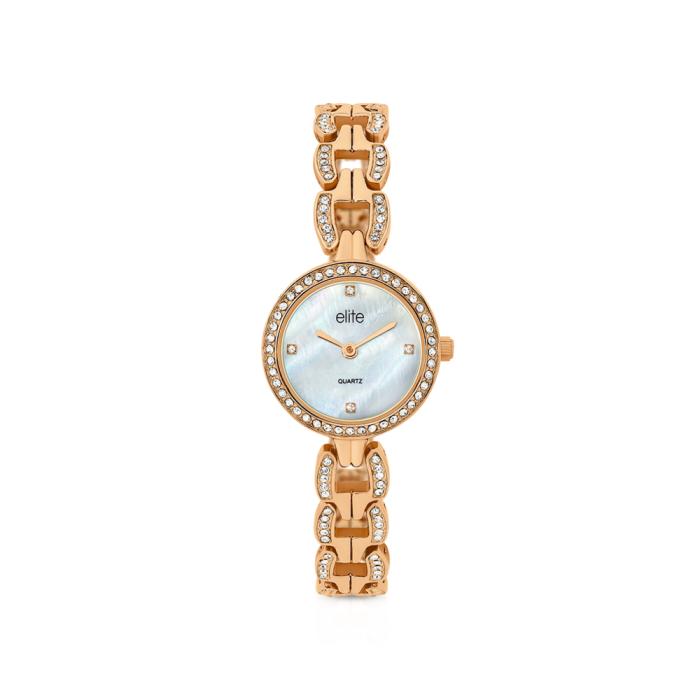 The Folio Watch is a bold celebration of refined luxury. With its gleaming rose gold-tone finish and crystal-adorned bracelet, this timepiece captures the essence of high-end elegance. The luminous mother-of-pearl dial adds depth and sophistication, while minimalist hour markers keep the look clean and timeless. Perfect for formal occasions or adding a touch of sparkle to everyday ensembles, the Folio Watch is your signature piece of glamour.