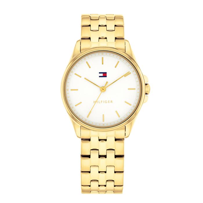 Effortlessly chic and timeless, the Tommy Hilfiger womens watch offers versatile styling with a 30mm case and integrated bracelet. Featuring a sunray dial with applied stick indexes and a coloured flag at 12 oclock, its the perfect blend of easy wear and sophisticated design.