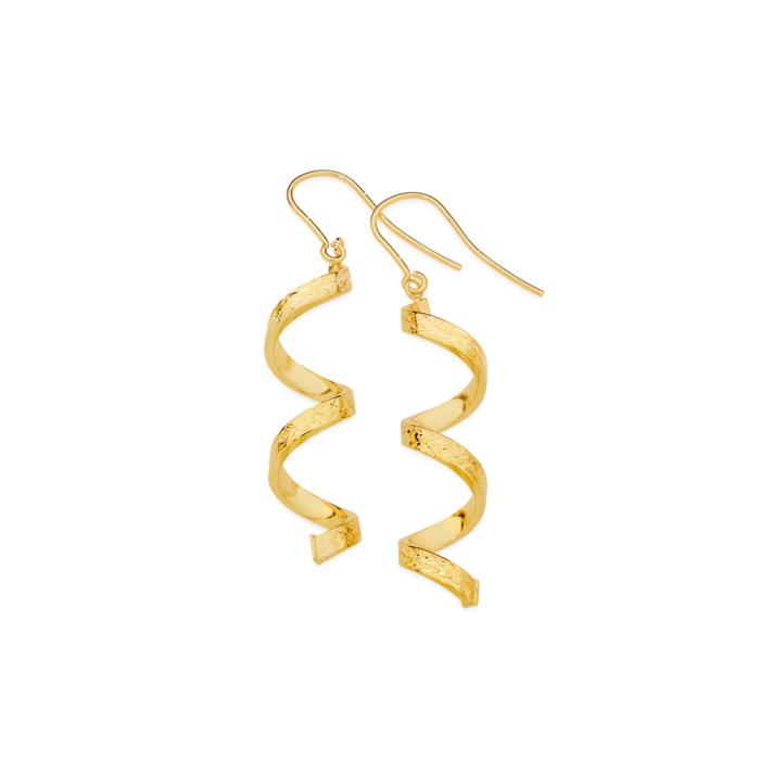 9ct Gold Diamond-Cut Square Tube Spiral Hook Earrings