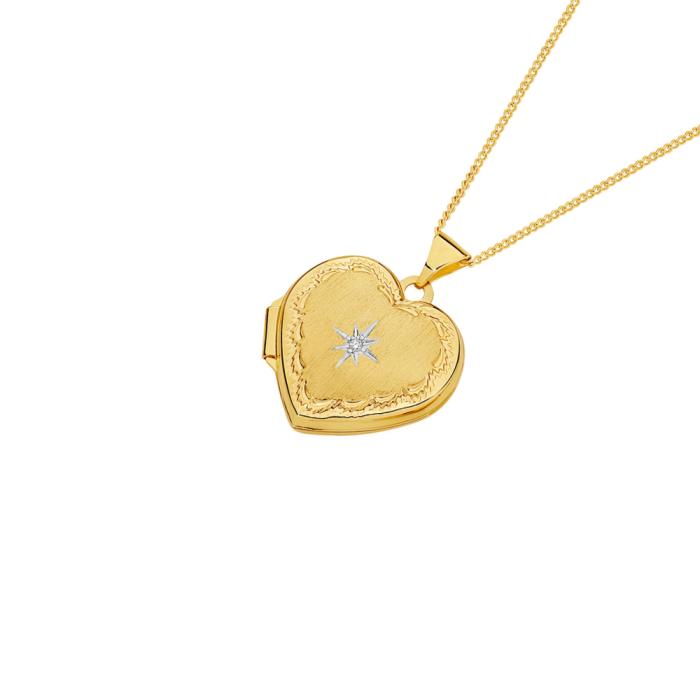 9ct Gold 18mm Diamond Centre & Border Heart Locket.2555042
