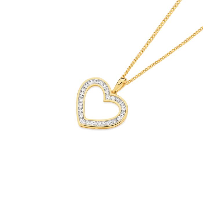 9ct Gold Diamond Open Heart Pendant Total Diamond Weight = .50ct Size = Approx. 21mm x 18mm Including Bale.