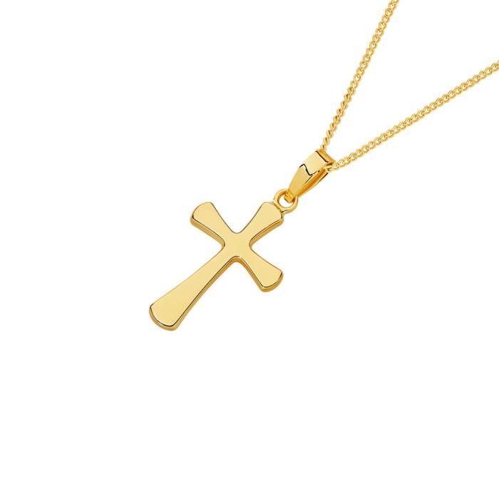 Italian Made 9ct Gold 20mm Polished Fluted Cross Pendant.2585023