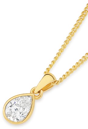 Alora 9ct Gold 65 Point Solitaire Lab Grown Diamond Bezel Pear Shape Pendant