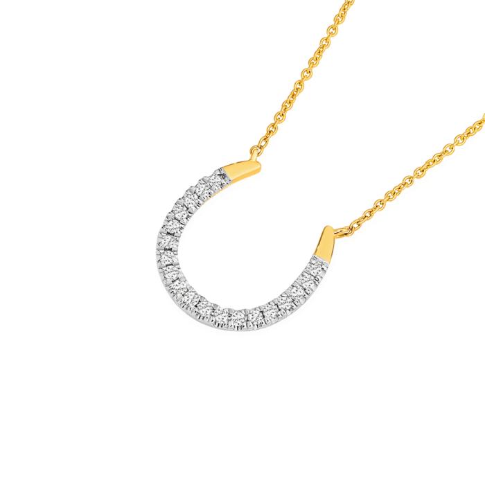 Exquisites Collection: 9ct Gold Diamond Pave Set Horseshoe Necklet with 45cm Chain Total Diamond Weight=.10ct. Size = Approx. 12mm x 12mm