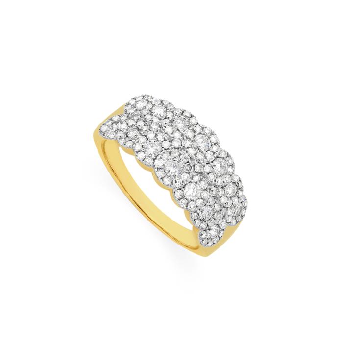 9ct Gold Diamond Multi Cluster Dress Band