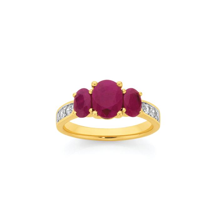 9ct Gold Natural Ruby & Diamond Trilogy Ring