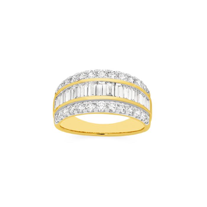 Alora by Angus & Coote 10ct Gold Lab Grown Diamond Round Brilliant Cut/Baguette Cut Three Row Dress Band Total Weight = 2.00ct
