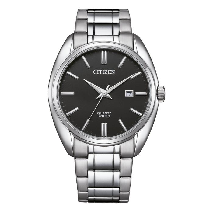 Renowned for its precision, Citizen introduces a robust timepiece that commands attention with every glance. Its sharp hands, minimalist markers, and sleek black dial ensure enhanced visibility, ideal for those with busy schedules. Complemented by a discreet date display at 3 o'clock and water resistance of 50 meters, this watch is crafted for versatility and unwavering reliability. Make a bold statement of style and functionality with Citizen's impeccable craftsmanship.