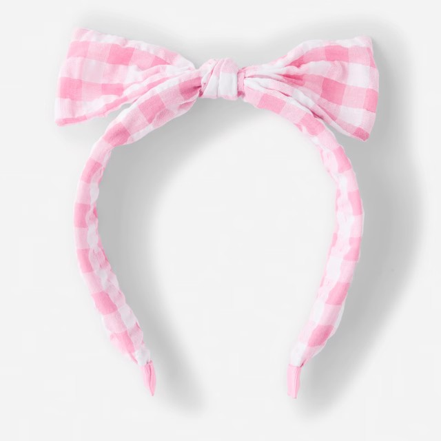 Gingham Bow Headband - Pink and White