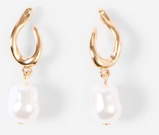 Loop and Faux Pearl Drop Earrings - Gold Tone