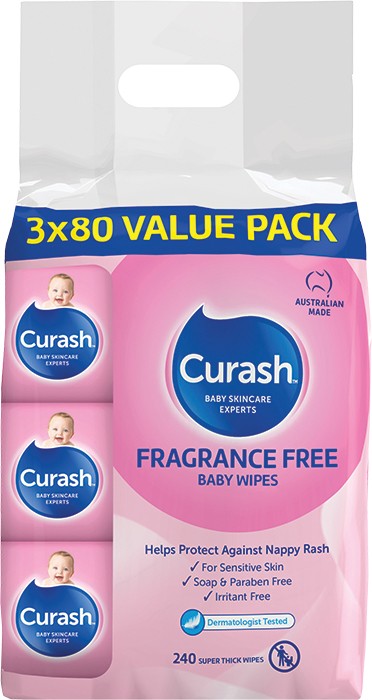 Curash Fragrance Free Baby Wipes 3x80 Pack