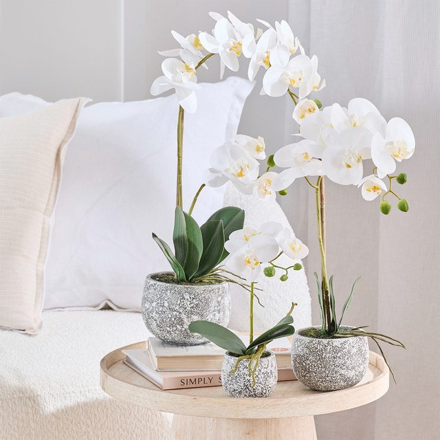 Artificial Phalaenopsis White Orchid in Pot by M.U.S.E.