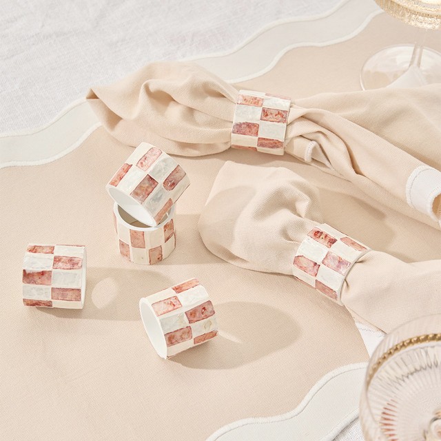Kamari Check Capiz Napkin Ring Set of 6 by M.U.S.E.