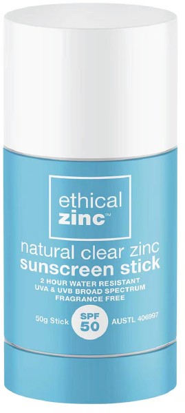Ethical Zinc Natural Clear Zinc Sunscreen Stick SPF50 50g