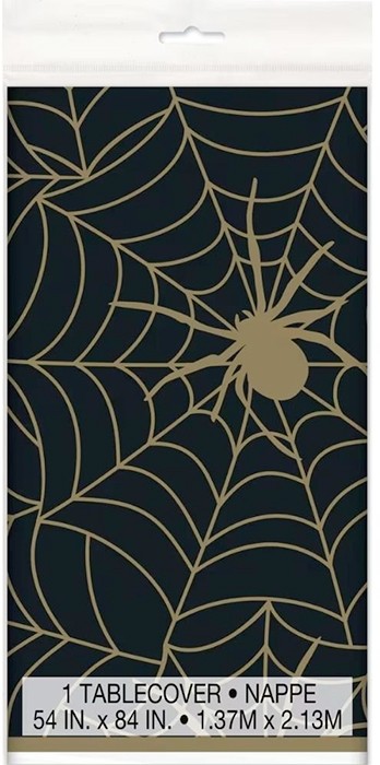 NEW Halloween Spider Web Gold Tablecover Plastic Ea