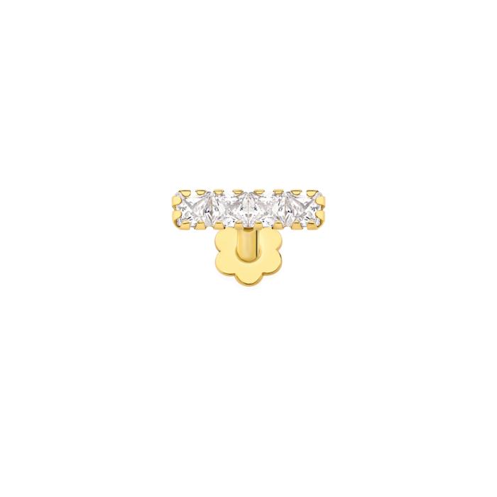 European Made 9ct Gold Multi-Square Cubic Zirconia Bar Flat Back Labret. Approximate Dimensions - Bar = 8x2mm, Post = 7mm Length x 1mm Gauge.
