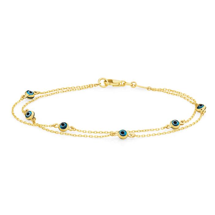 9ct Gold 19cm Double Strand Evil Eye Bracelet2177077