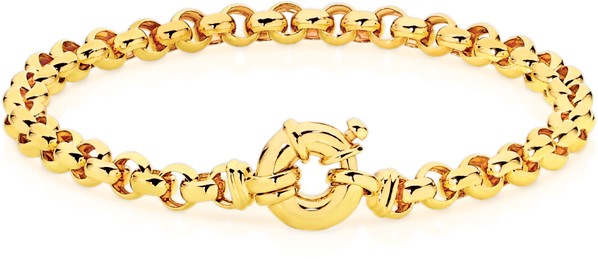 9ct Gold 19cm Solid Round Belcher Bolt Ring Bracelet - Approximate Dimensions 12mm Bolt Ring and 5mm Link Width