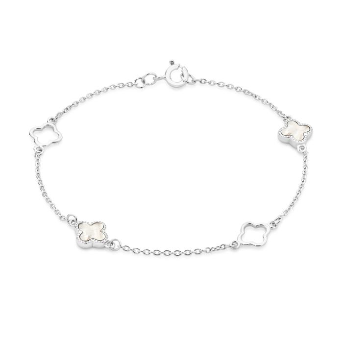 Sterling Silver Mother of Pearl 21cm Clover Cable Bracelet1179118
