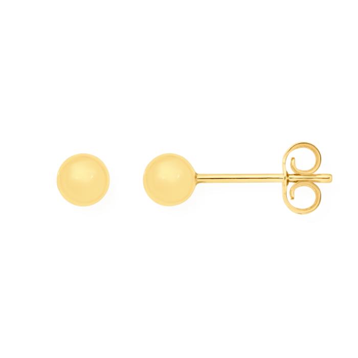 European Made 9ct Gold Polished Finish Ball Stud Earrings - 4mm Approximate Diameter