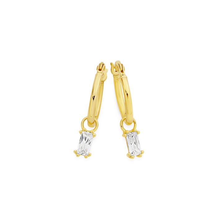9ct Gold Cubic Zirconia Drop Hoop Earrings