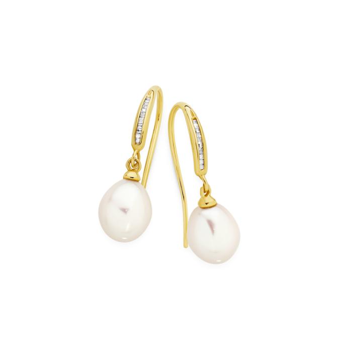 9ct Gold Cultured Freshwater Pearl & Diamond Earrings 7687056
