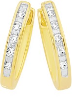 9ct Gold Diamond Huggie Earrings. External Size = Approx. 10mm x 1mm. 8347013