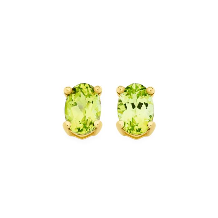 9ct Gold Peridot Oval Cut 6x4mm Claw Set Stud Earrings 7549063