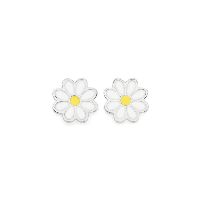 Sterling Silver Yellow & White Enamel Daisy Stud Kid's Earrings.1537043