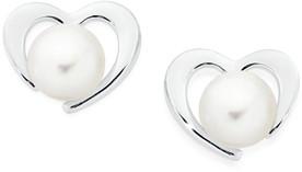Sterling Silver Freshwater Pearl Open Heart Stud Earrings 1687109