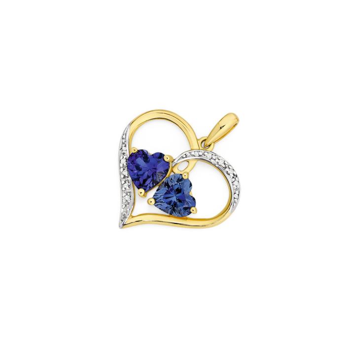 9ct Created Sapphire & Diamond Heart Pendant7217004