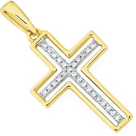 9ct Gold Diamond Cutout Cross Pendant 8837031