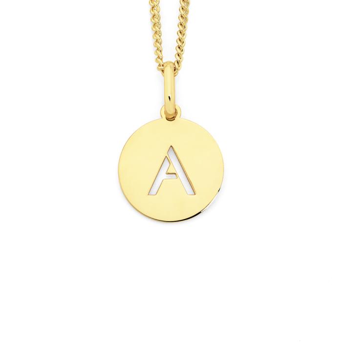 9ct Gold Initial A Sanserif Round Disc Pendant