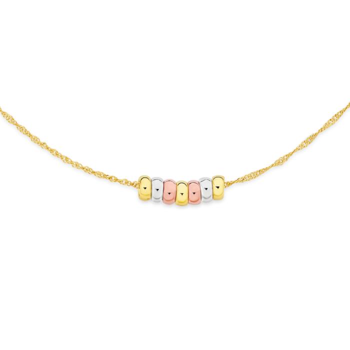 9ct Gold Tri Tone 45cm Mini 7 Rings of Luck Necklet