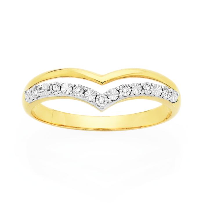 9ct Gold Diamond Double Row "V" Shape Band 8637289